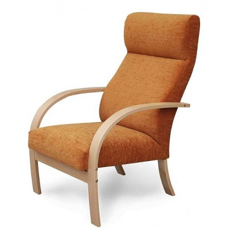 Velmi pohodlné křeslo s dřevěnými područkami. Šířka křesla 68, výška 103, hloubka 88 a výška sedu 44 cm. Výběr potahových látek a barevného provedení područek.